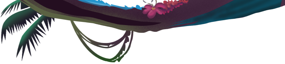In the water, a crocodile sleeps peacefully. In its torpor, the crocodile is awakened by the sound of the Mardi Gras bead necklace swinging on the partying monkey's chest. He half opens one eye, intrigued, then another, when he hears the monkey humming frenzied tunes and he stands there watching the animal.